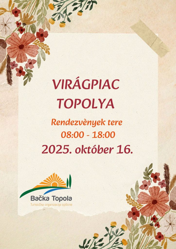 2025. október 16-án, csütörtökön, 08:00 és 18:00 óra között kerül megrendezésre a hagyományos **Virágvásár 2025** a topolyai Rendezvénytéren. A látogatók gazdag kínálatból válogathatnak: virágok, palánták, dísznövények és kiegészítők várják az érdeklődőket, valamint hasznos tanácsokat is kaphatnak tapasztalt termelőktől és kiállítóktól. Jöjjön el, tegye szebbé kertjét, erkélyét vagy udvarát, és élvezze az őszi színek és illatok varázsát Topolya szívében.